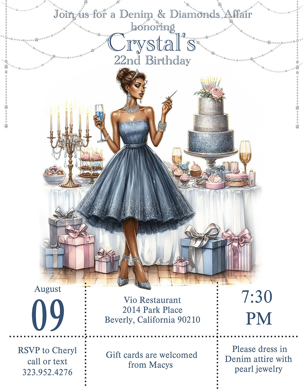 Denim & Pearls Birthday IV Party Invitation (sold in sets of 10)
